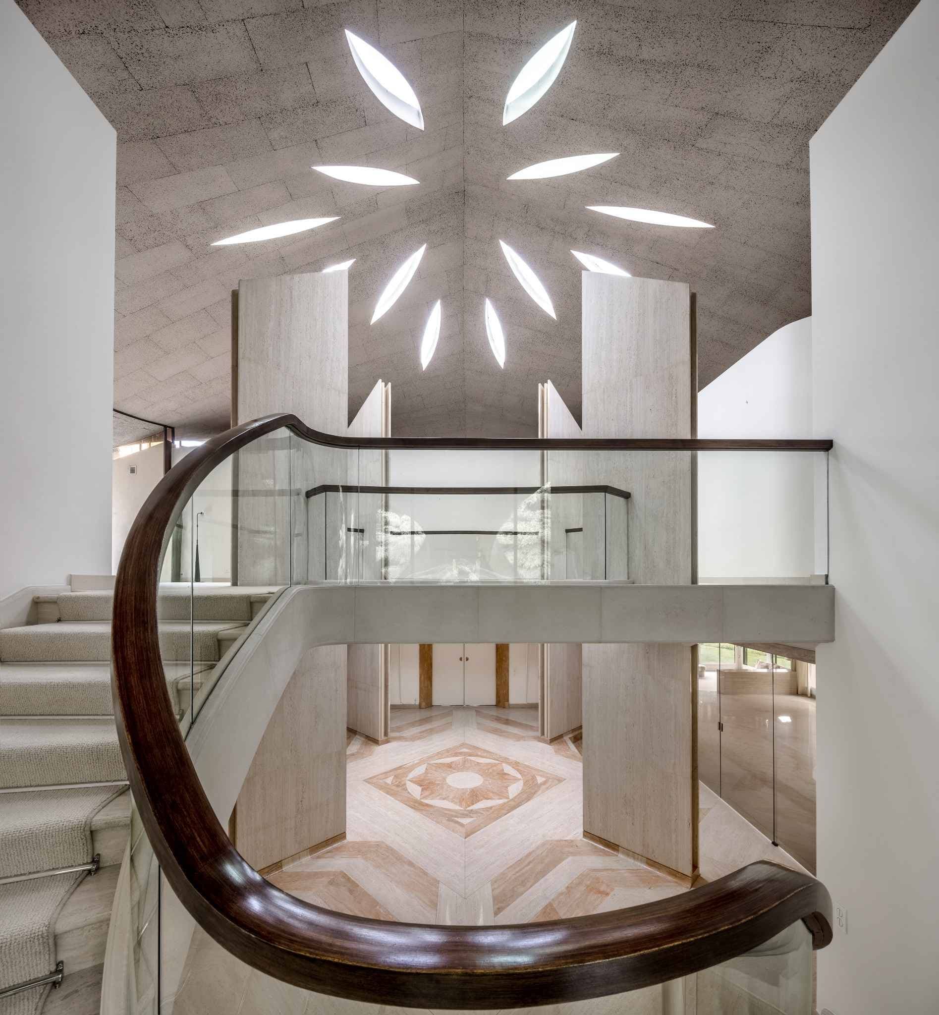 Distribuée sur deux niveaux hors-sol et un sous-sol totalisant une surface utile de plus de 1 100 m², cette maison offre de magnifiques volumes et de vastes espaces éclairés par des puits de lumière naturels, permettant la mise en valeur de belles œuvres d'art.