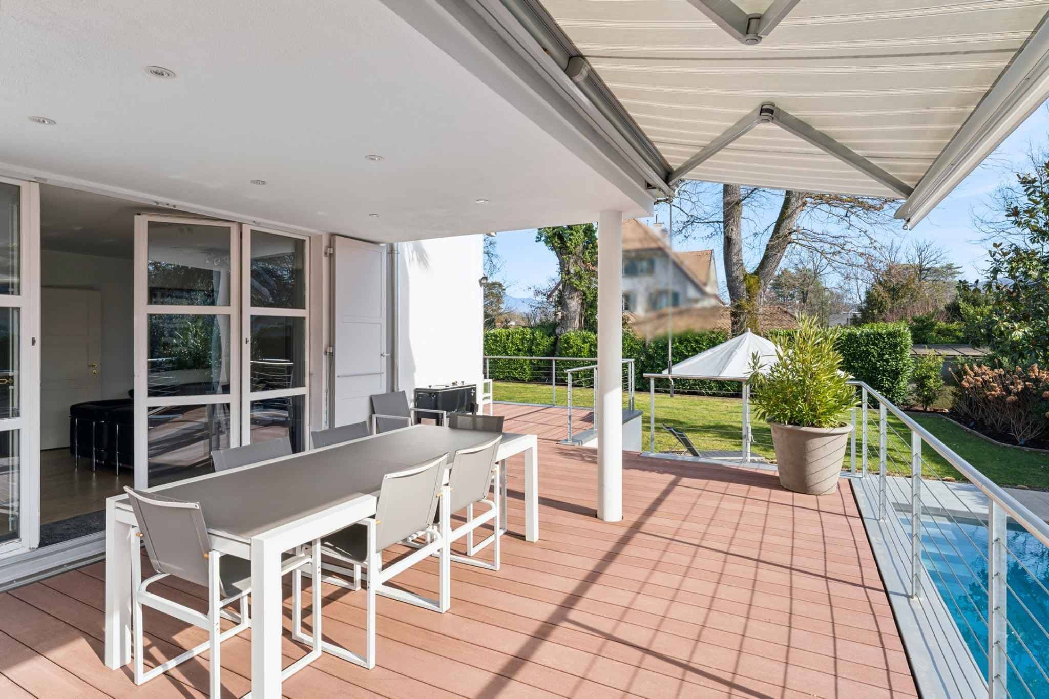 À l’extérieur, une magnifique piscine à débordement sublime les lieux. Un box fermé de 50m2 pour deux voitures et trois places de stationnement extérieures viennent compléter cette propriété exceptionnelle. De plus, une salle de fitness, située sous le garage.