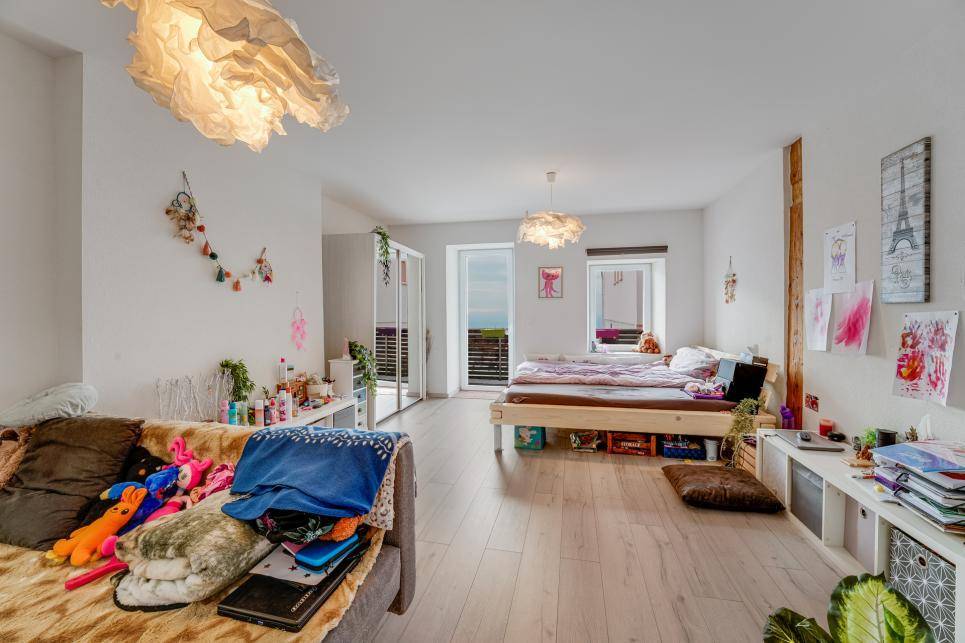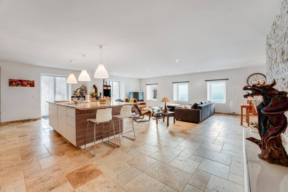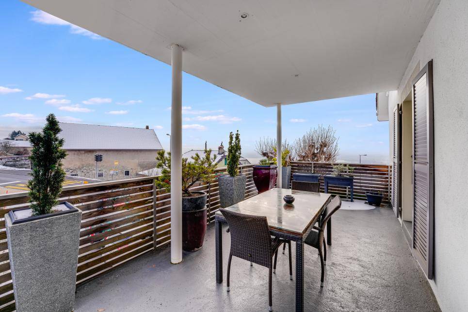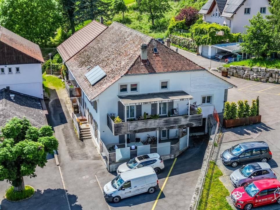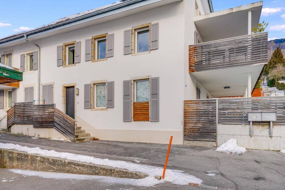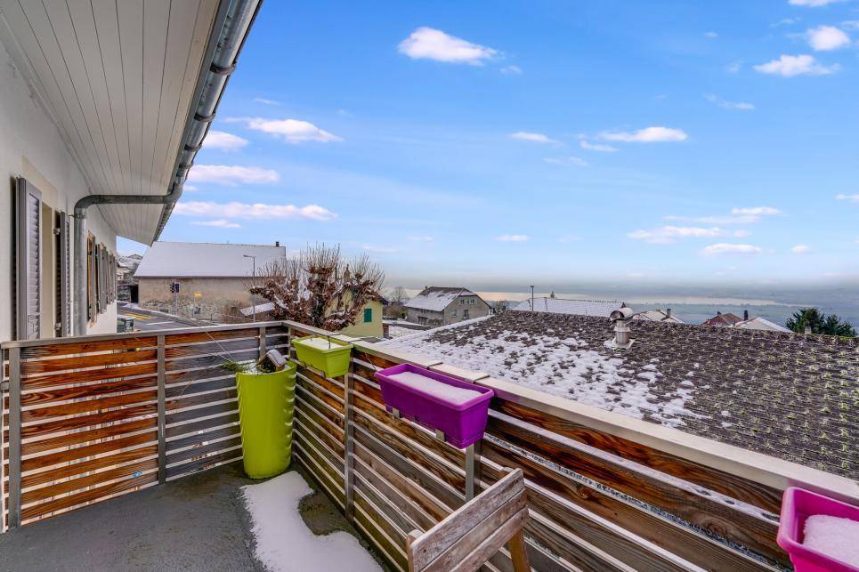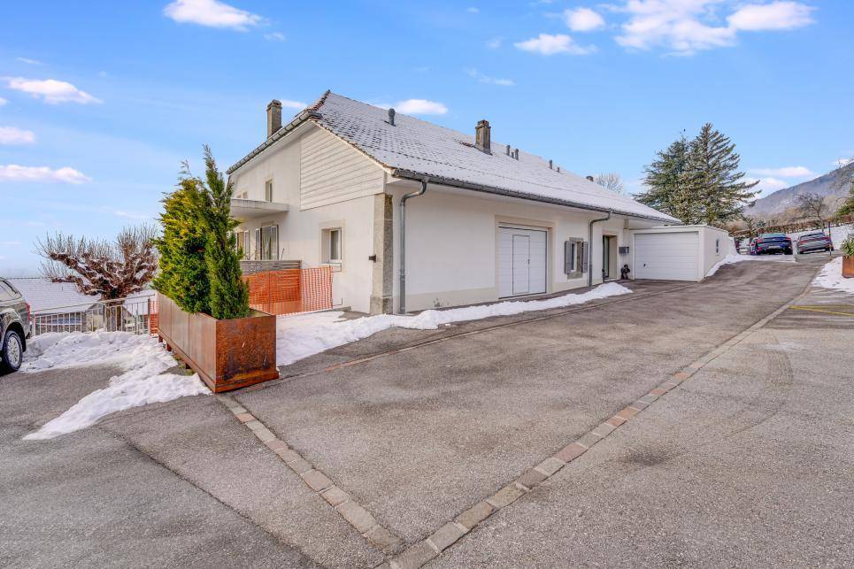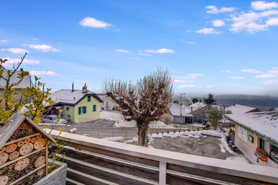 Cette belle maison de village est très bien située et l'appartement du rez supérieur jouit d'une vue panoramique sur Yverdon-les-Bains et le lac de Neuchâtel.