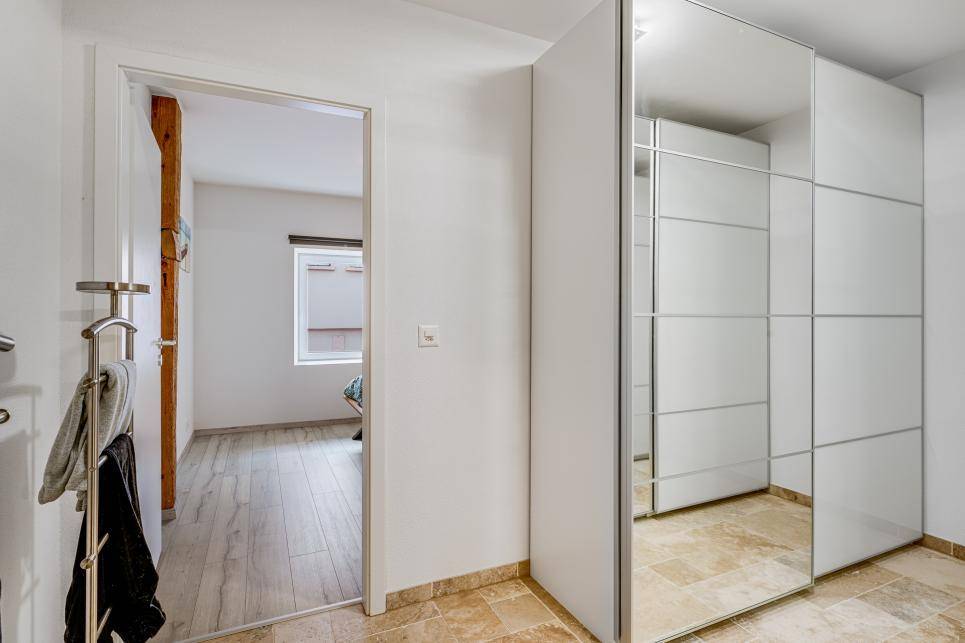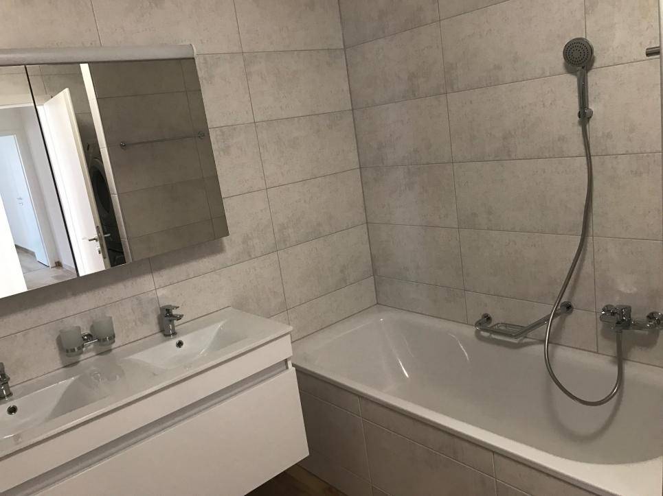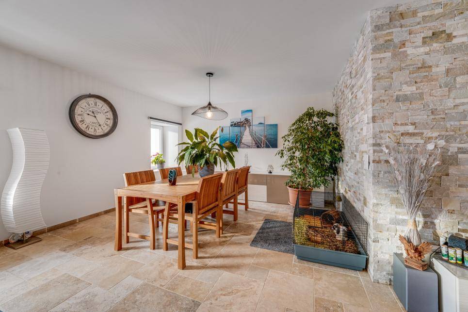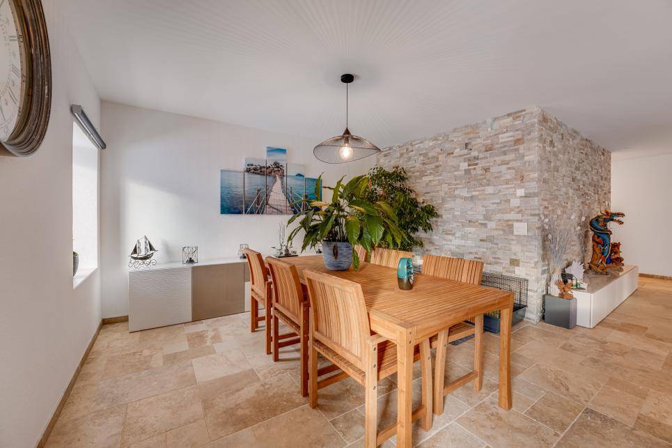Toutes les parties jour des appartements ont un revêtement de sol en travertin, les chambres ont un revêtement en paquet stratifié, tout est de très bonne facture.