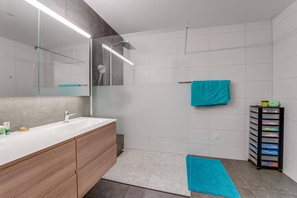Les salles de bains sont très bien aménagées avec mobilier, grandes douches, baignoires, doubles lavabos avec des choix contemporains et de très bon goût.