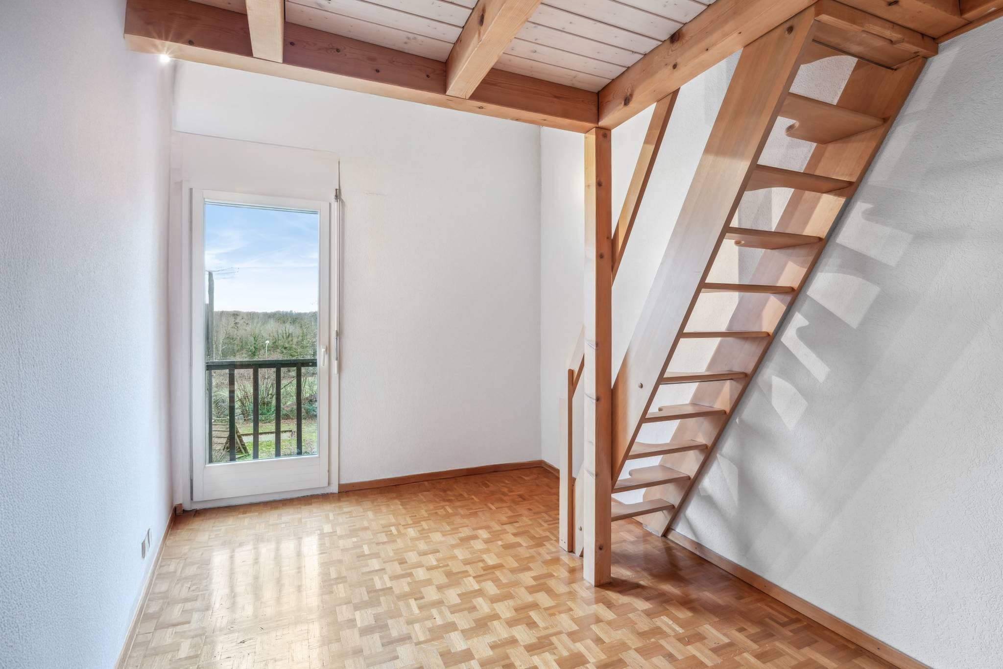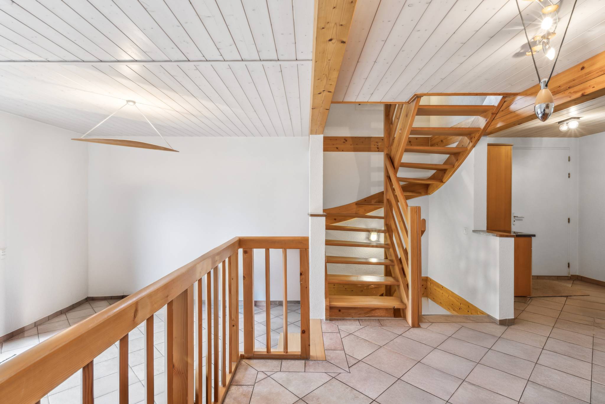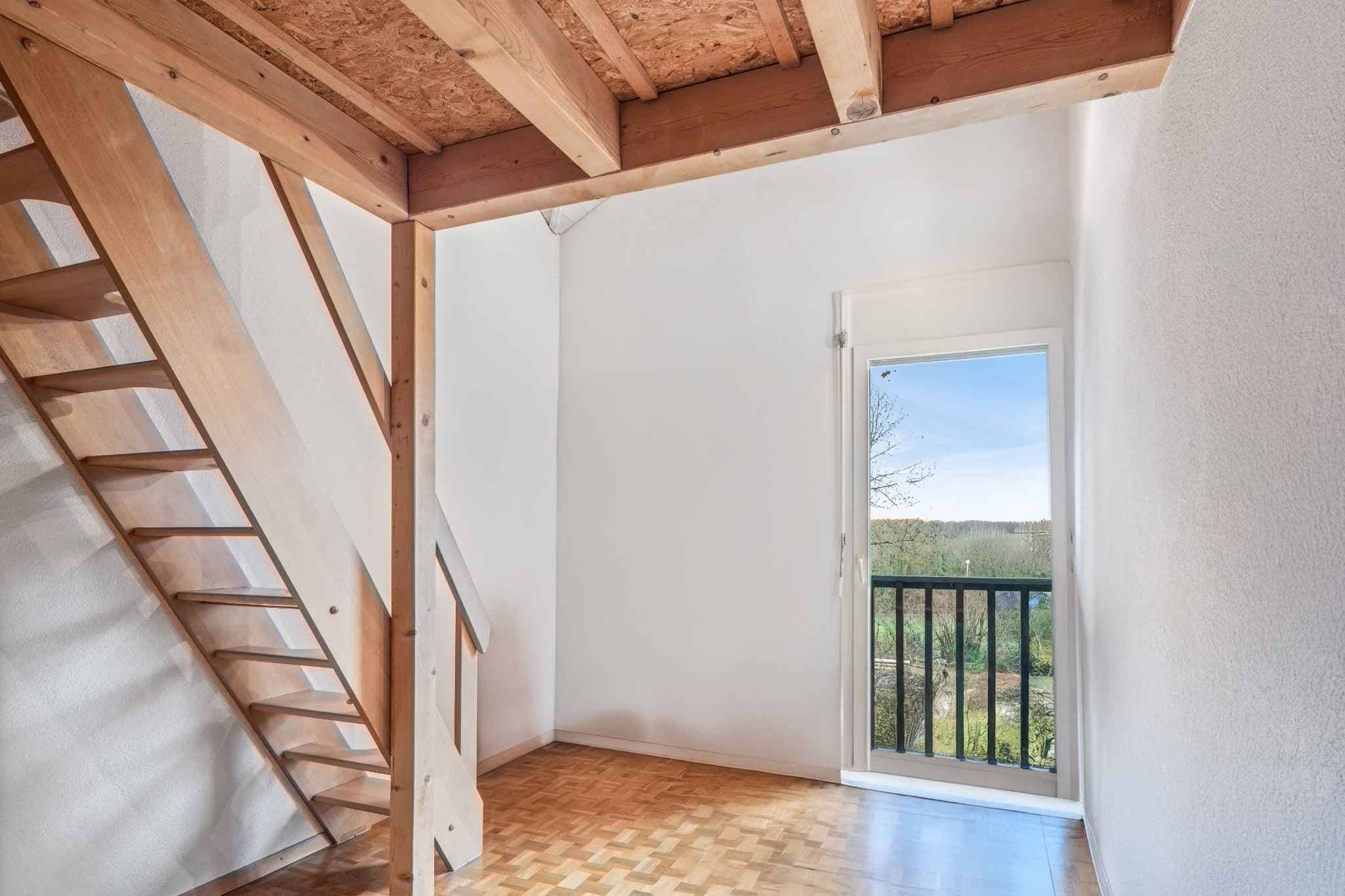 L’étage est composé de trois chambres à coucher, dont deux avec une mezzanine, ainsi que d'une salle de bains avec douche et des toilettes séparées.