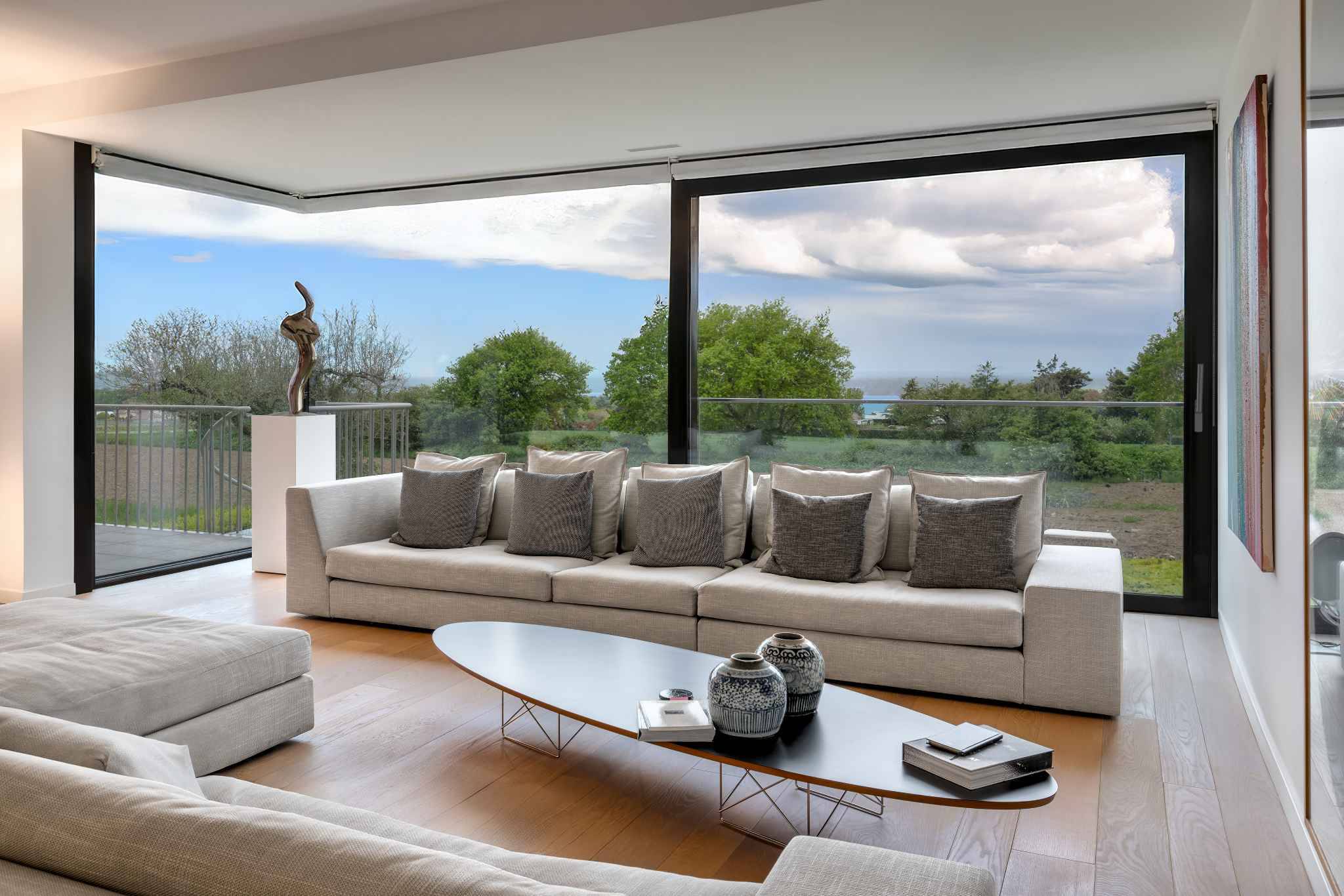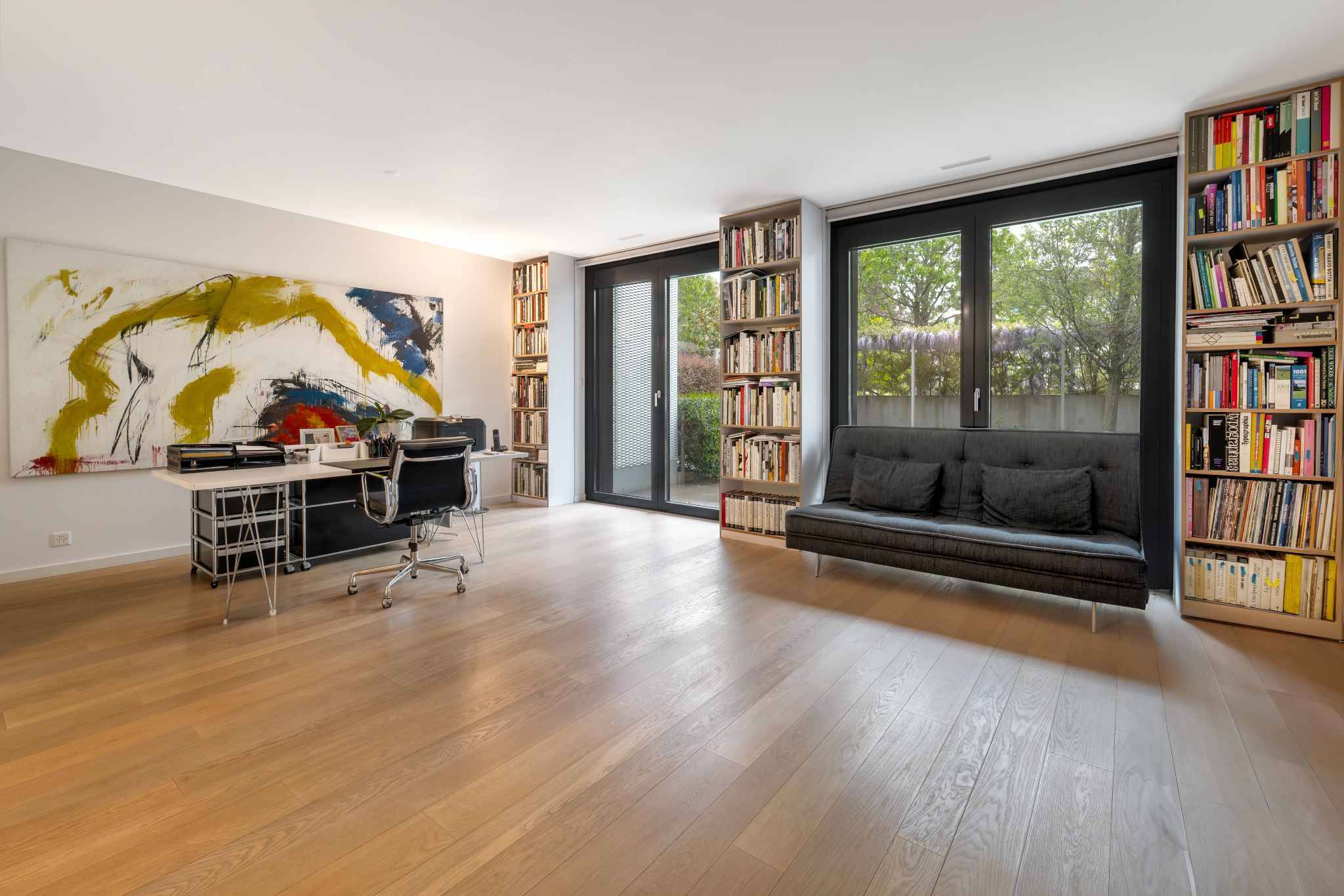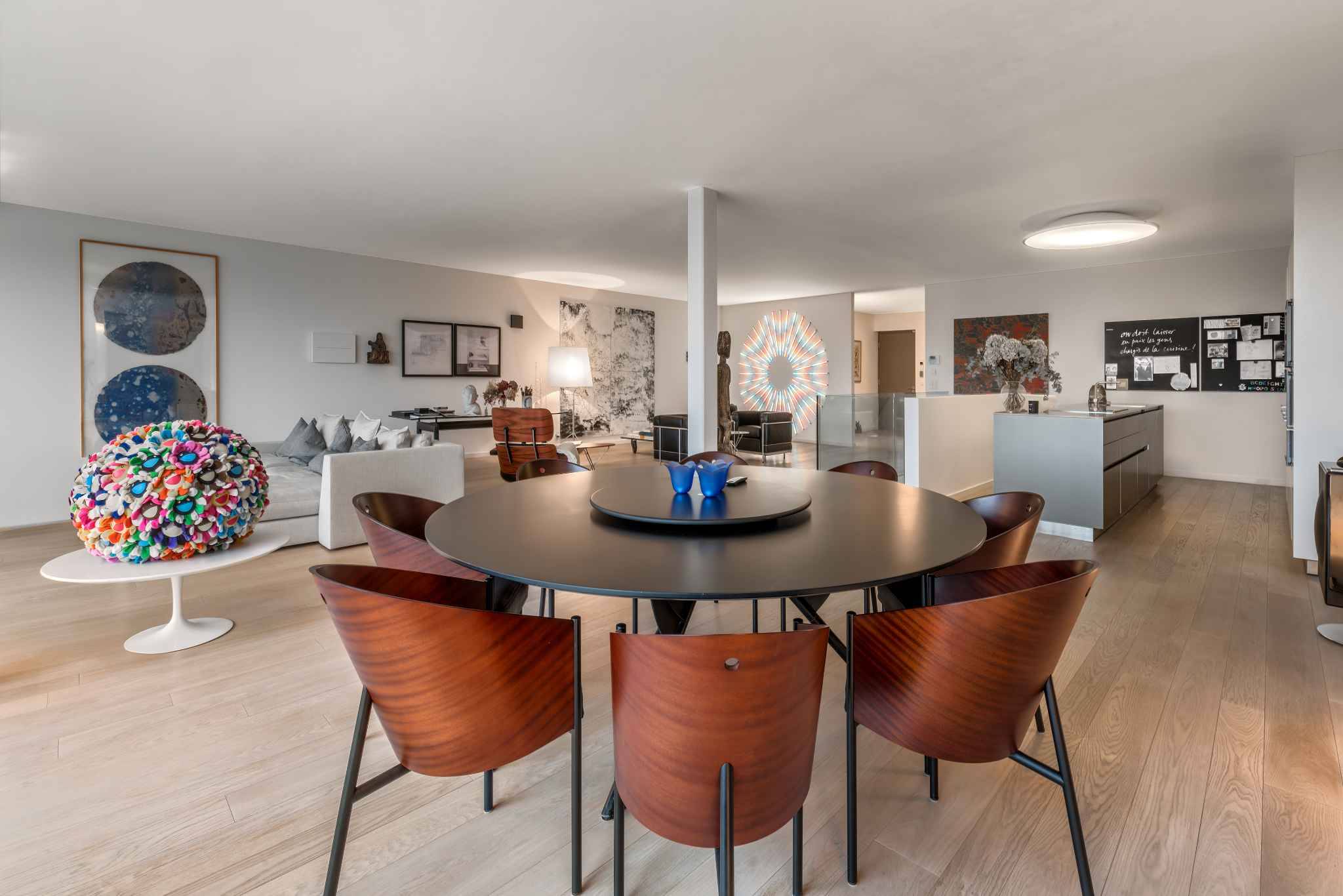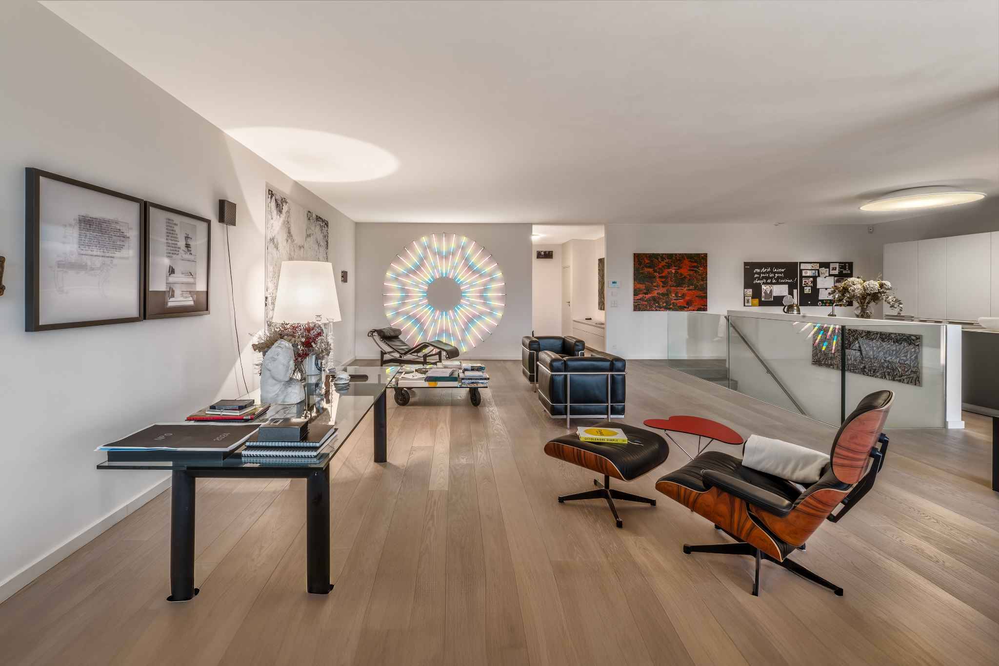 D’une surface PPE généreuse de 328 m², complétée par 38 m² de terrasses ainsi que deux jardins privatifs de 62 m² et 67 m², l’appartement séduit par ses volumes contemporains, ses finitions haut de gamme et ses lignes épurées. De larges baies vitrées inondent les espaces de lumière et offrent des vues sublimes, sur le lac, le Jura et les champs environnants, qui évoluent au rythme des saisons. Il est actuellement aménagé comme suit: