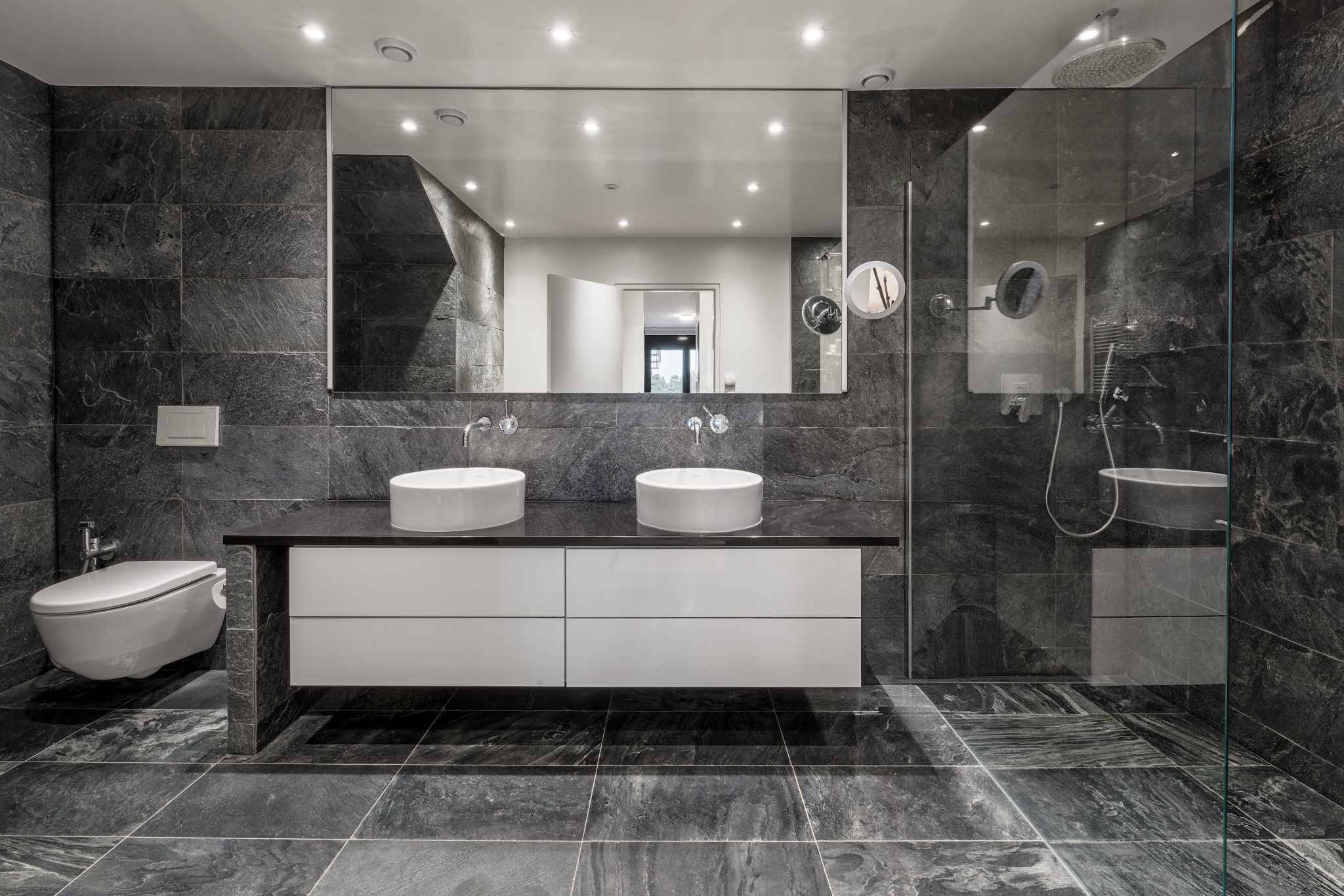 Au rez-de-jardin, se trouve une suite parentale avec dressing et salle de douche attenante, deux chambres à coucher, chacune avec salle de bains privative. Toutes les chambres donnent accès à une grande terrasse orientée Ouest et au second jardin, offrant un espace de détente au cœur de la verdure.