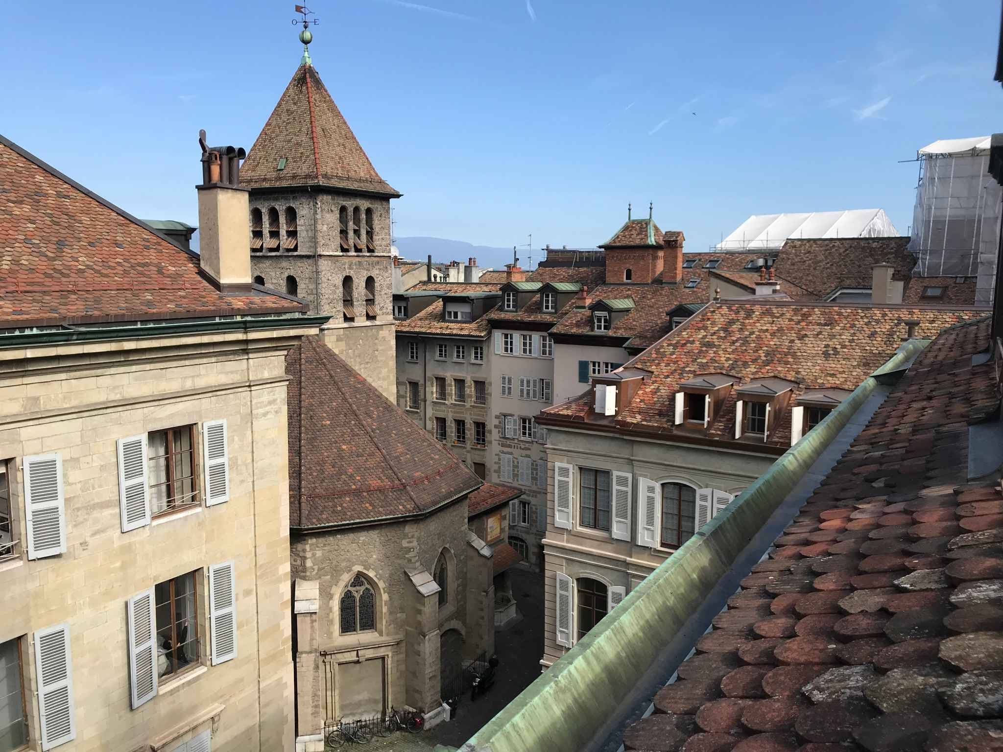 Situé au cœur de la Vieille-Ville, dans un magnifique et emblématique immeuble classé du 18e siècle de la rue des Granges, surplombant la Treille et la Place Neuve, ce duplex au dernier étage d’une surface pondérée de vente de 125 m2, offre une belle vue dégagée sur le parc des Bastions ainsi que sur les toits de la vieille ville.