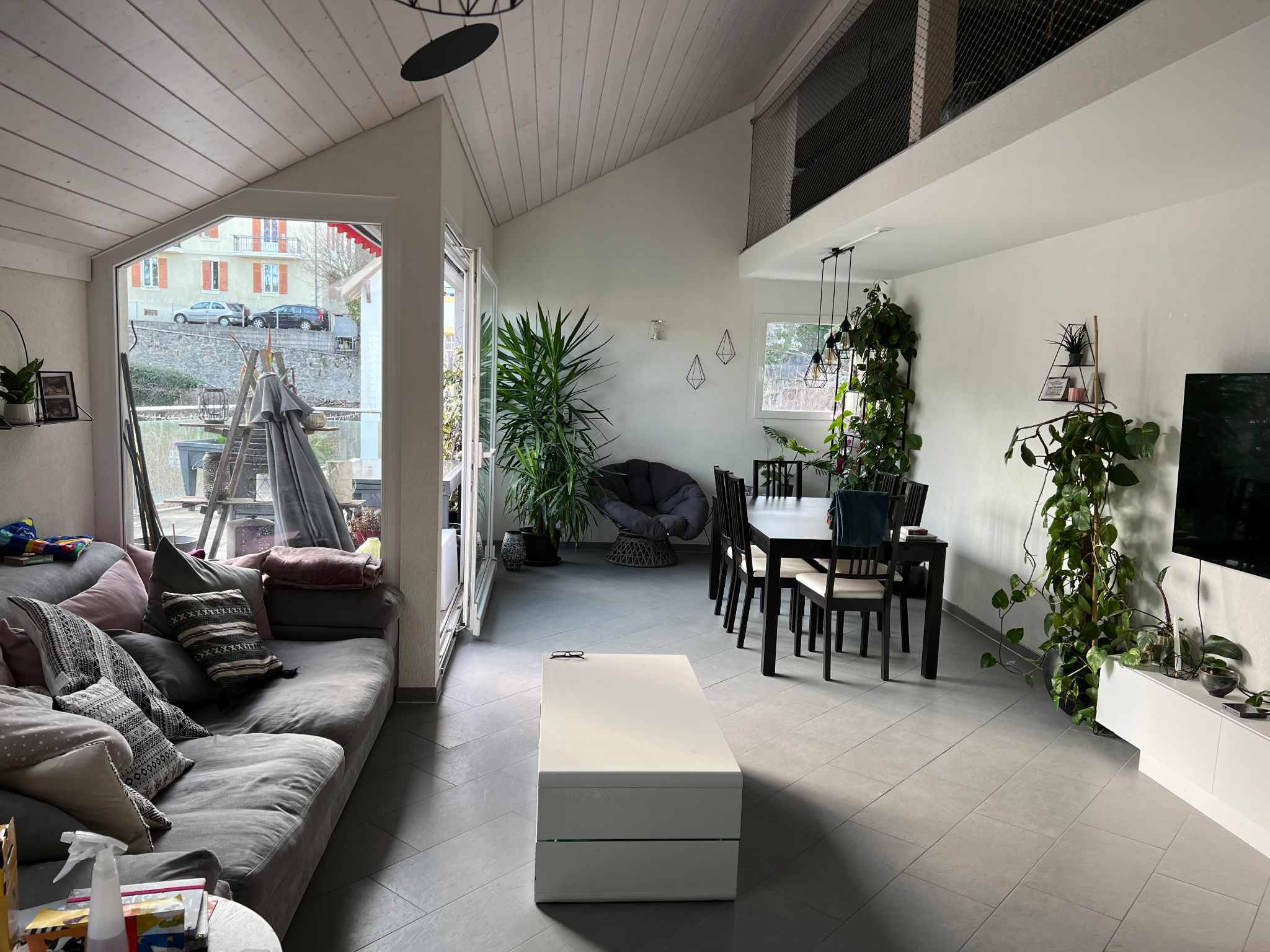 Magnifique duplex lumineux de 4½ pièces + galerie dans les combles, de bon standing, situé au sein d'une petite PPE de 11 appartements, se composant comme suit: Au premier niveau: - un hall d'entrée avec coin vestiaire et armoires murales - une belle cuisine entièrement agencée, avec îlot central, ouverte sur le séjour - un spacieux séjour avec coin à manger et accès au balcon - 3 chambres - une salle de bains/WC avec colonne de lave et sèche-linge - une salle de douche - un WC séparé - un grand balcon (~ 26 m²) orienté sud-ouest Et à l'étage: - une grande galerie avec vide sur le séjour Ce bien dispose également d'une grande cave au rez-de-chaussée supérieur. Une place de parc extérieure (à CHF 12'500.- en sus du prix de vente affiché) ainsi qu'un garage-box (à CHF 50'000.- en sus du prix de vente affiché) dans le parking intérieur viennent complètement idéalement ce bien. Cet appartement, de bon standing, est vendu loué. Il est actuellement loué de la façon suivante: Loyer: CHF 2’180.- Charges: CHF 200.- Place de parc extérieure: CHF 60.- Garage: CHF 150.- TOTAL: CHF 2’590.- par mois Il dispose d'un dégagement idéal. Une zone extérieure avec une petite place de jeux est à disposition des résidents de la PPE. Sa situation centralisée (à deux pas du centre-ville et du parc St-Claude), calme et ensoleillée en fait un endroit agréable à vivre pour ses locataires. N’hésitez pas à nous contacter sans plus attendre pour plus d’informations sur ce charmant bien et/ou organiser une visite sur place ! Demandez-nous la brochure de vente de ce bien.