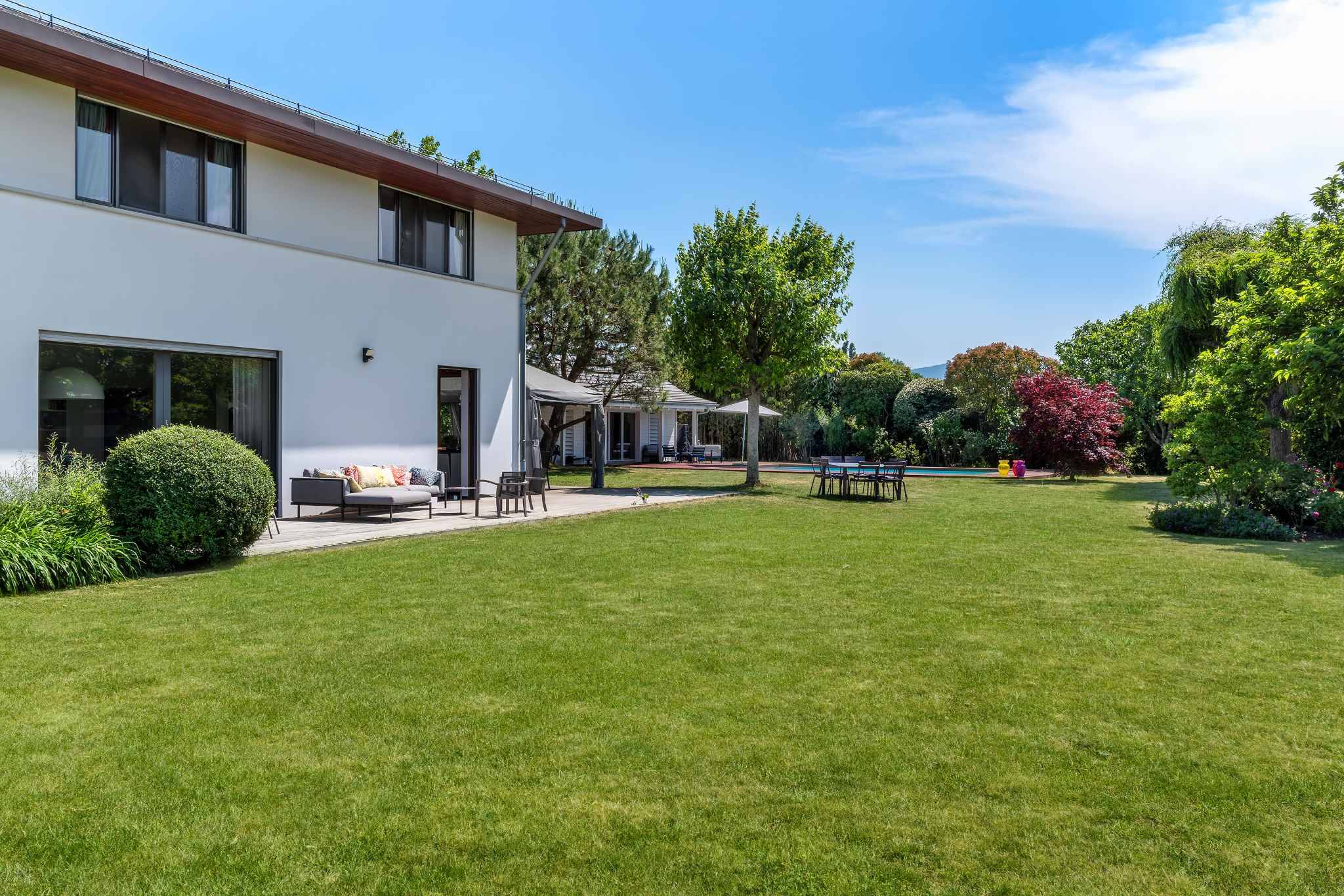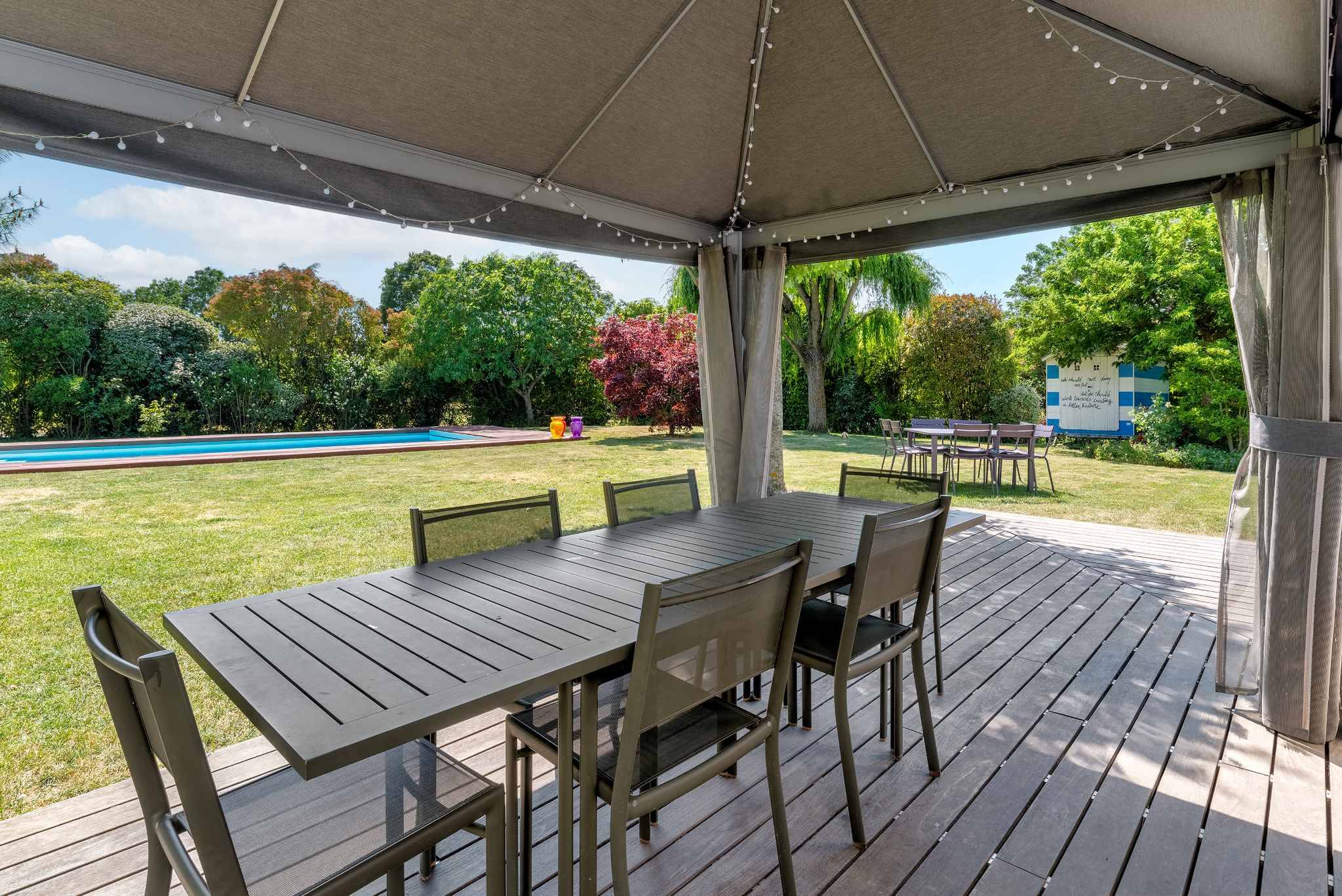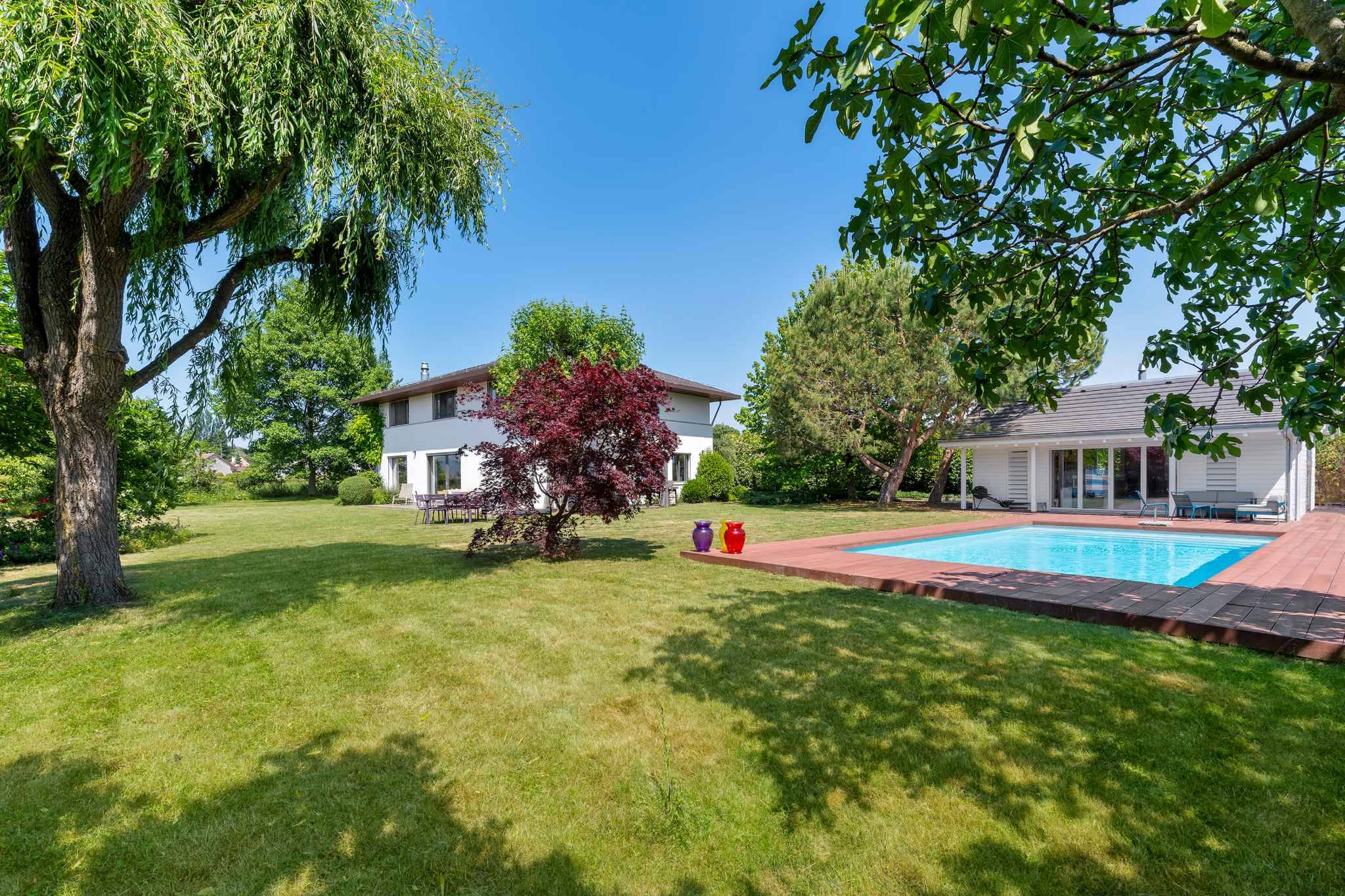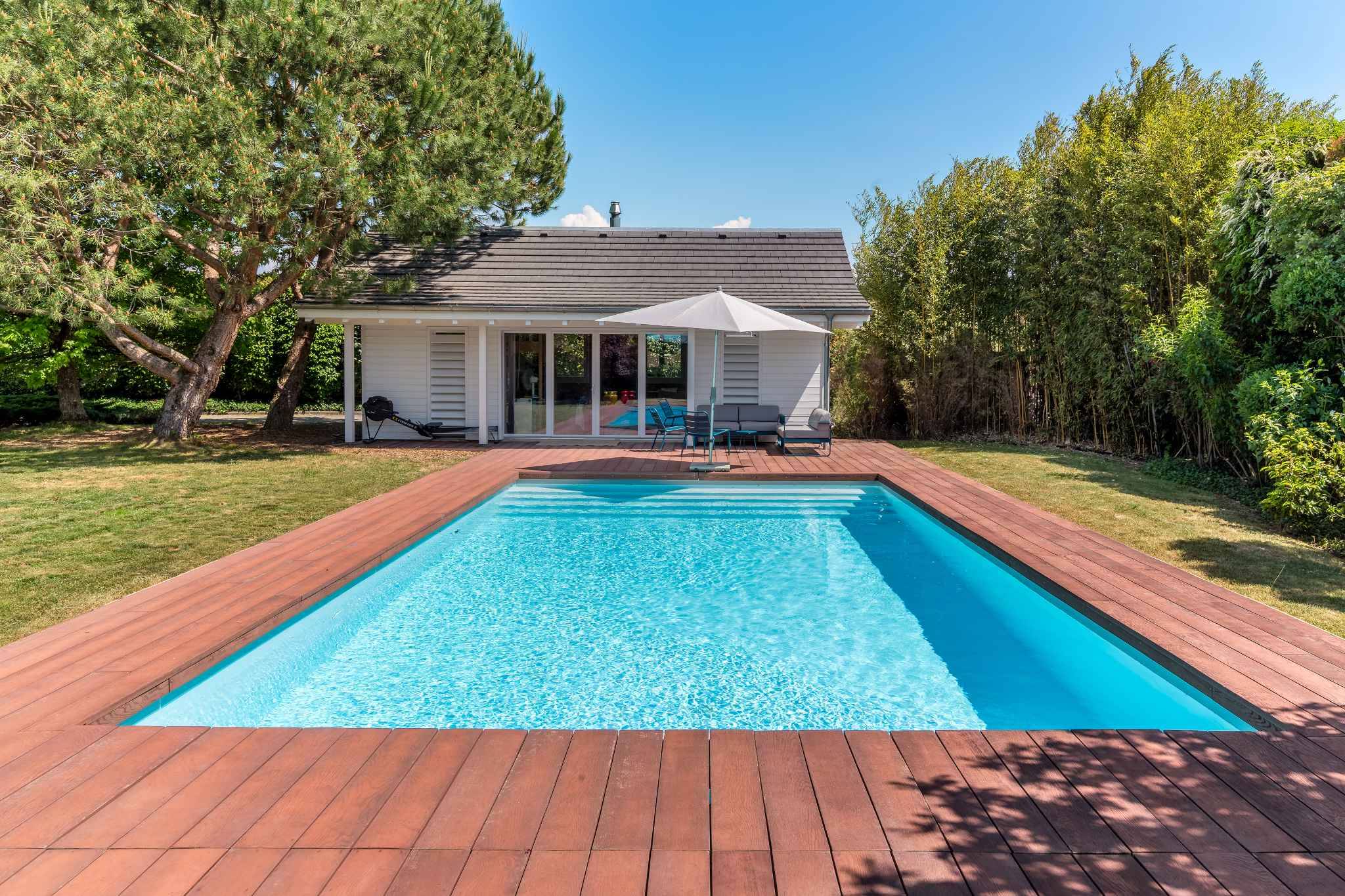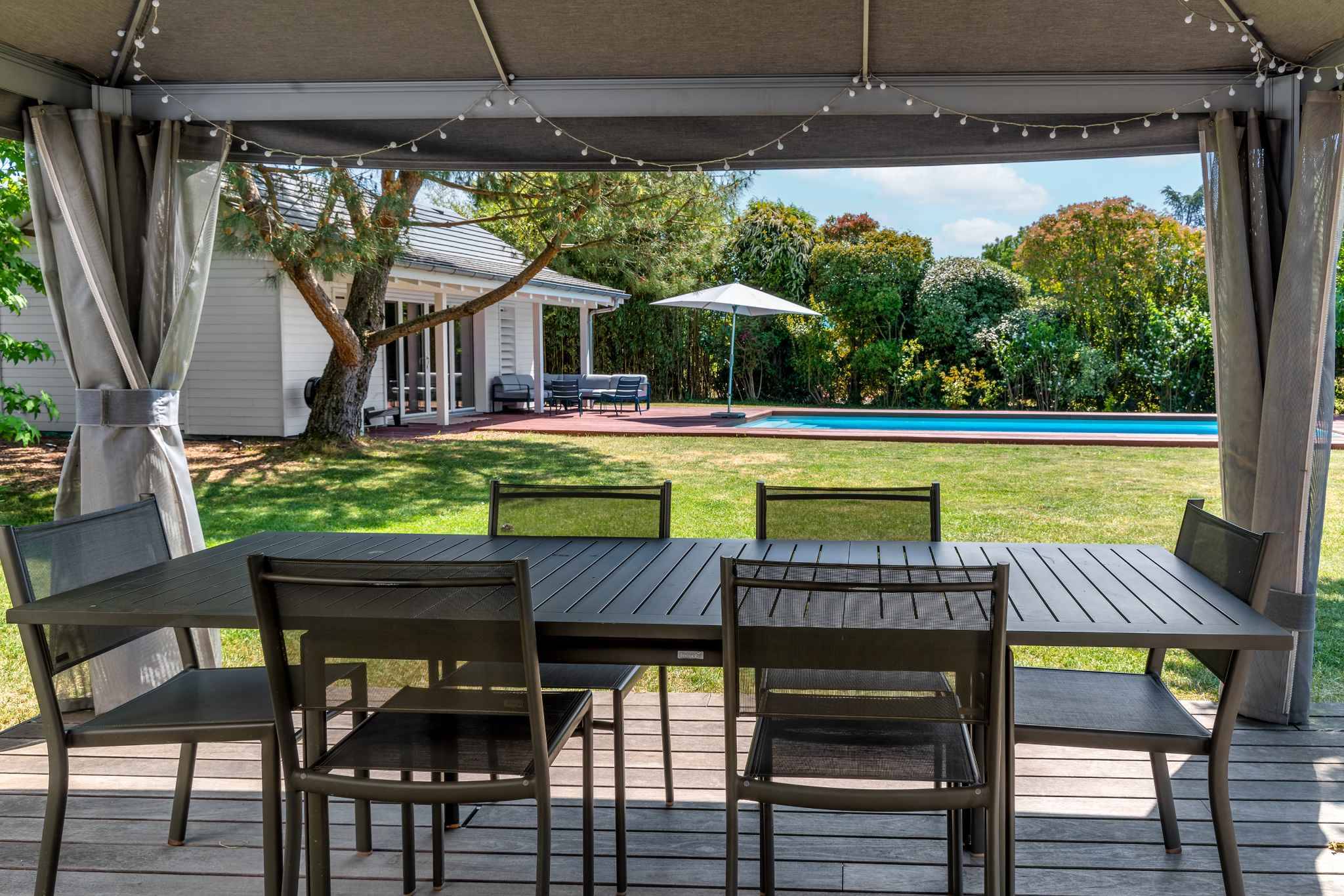 Édifiée sur une belle parcelle sans vis-à-vis, la propriété dispose d'un grand jardin agrémenté d’une piscine et d’un pool house.