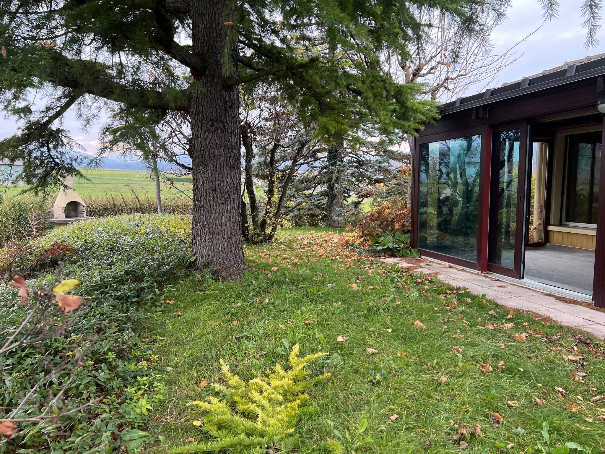 Cette villa offre une splendide vue dégagée sur la nature et les Alpes. Elle jouit d’un ensoleillement idéal avec une exposition plein sud.