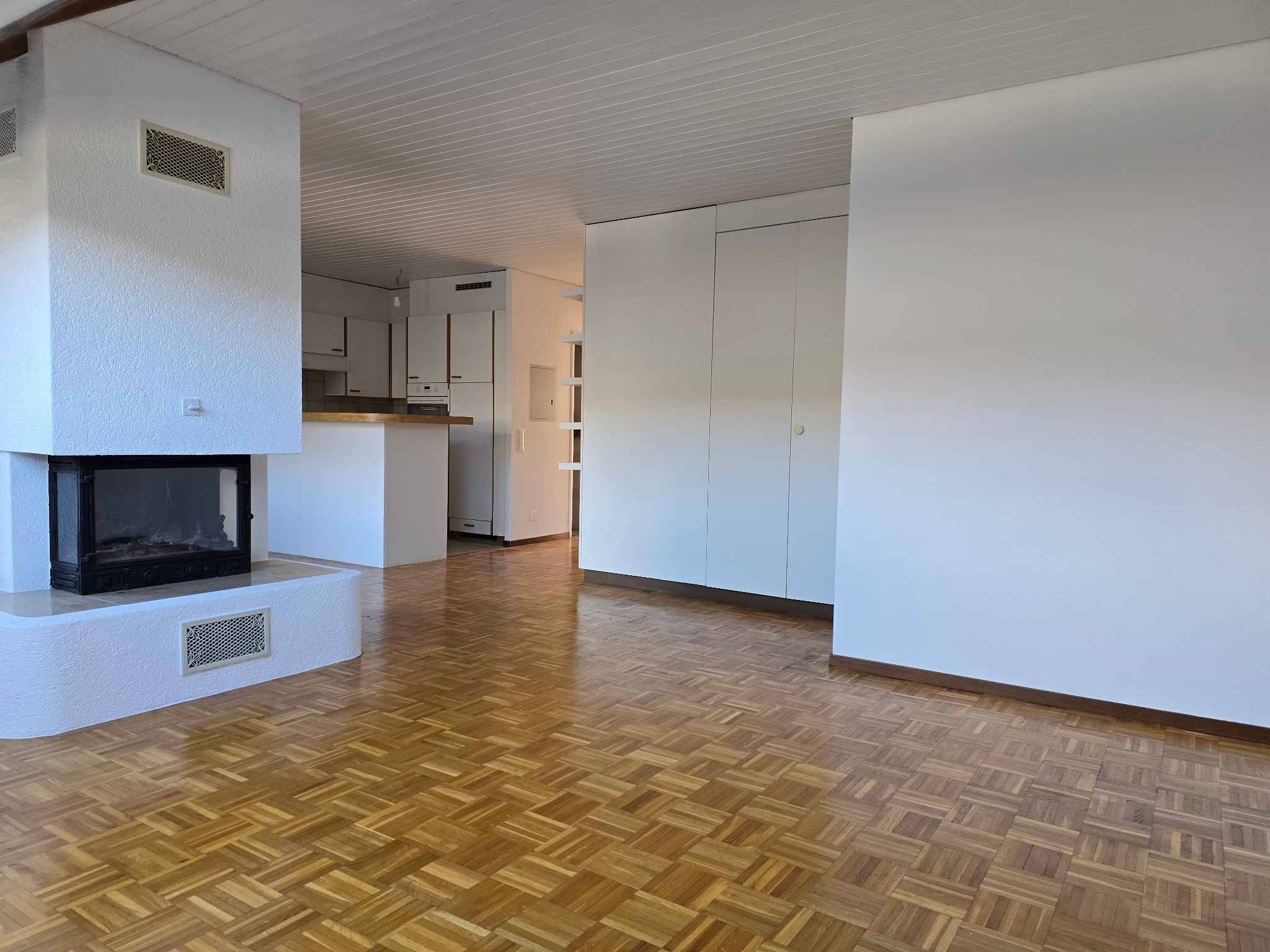 L'appartement est constitué d'une jolie entrée avec armoires de rangement, d'un spacieux salon avec cheminée et coin à manger avec accès à la terrasse privative.Une jolie cuisine totalement agencée et partiellement ouverte, une salle de bains avec baignoire et wc,ainsi qu'une belle chambre à coucher équipée d'une penderie. Une cave privative complète ce bien.