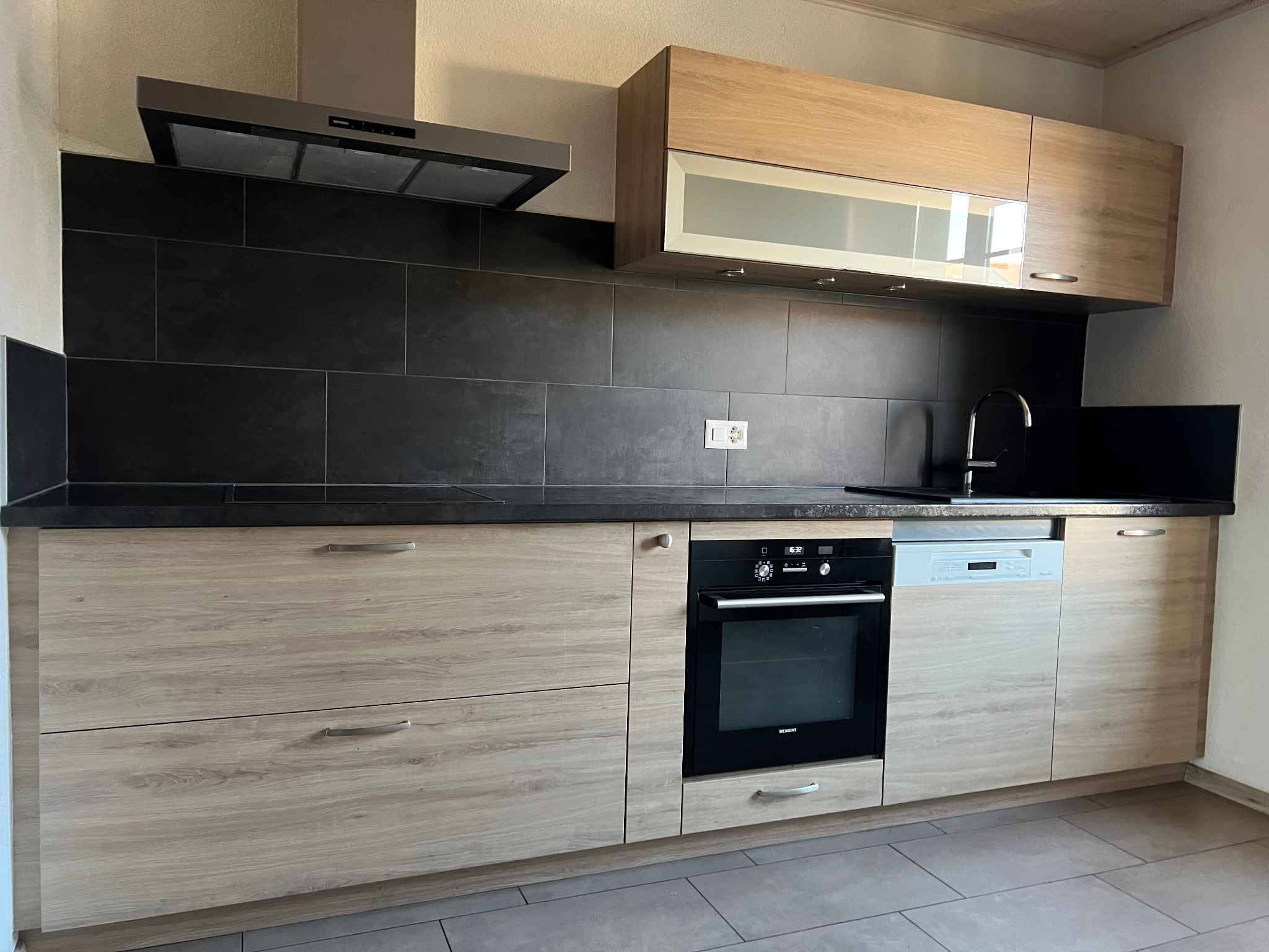 - une cuisine entièrement agencée, ouverte sur le séjour, avec colonne de lave et sèche-linge