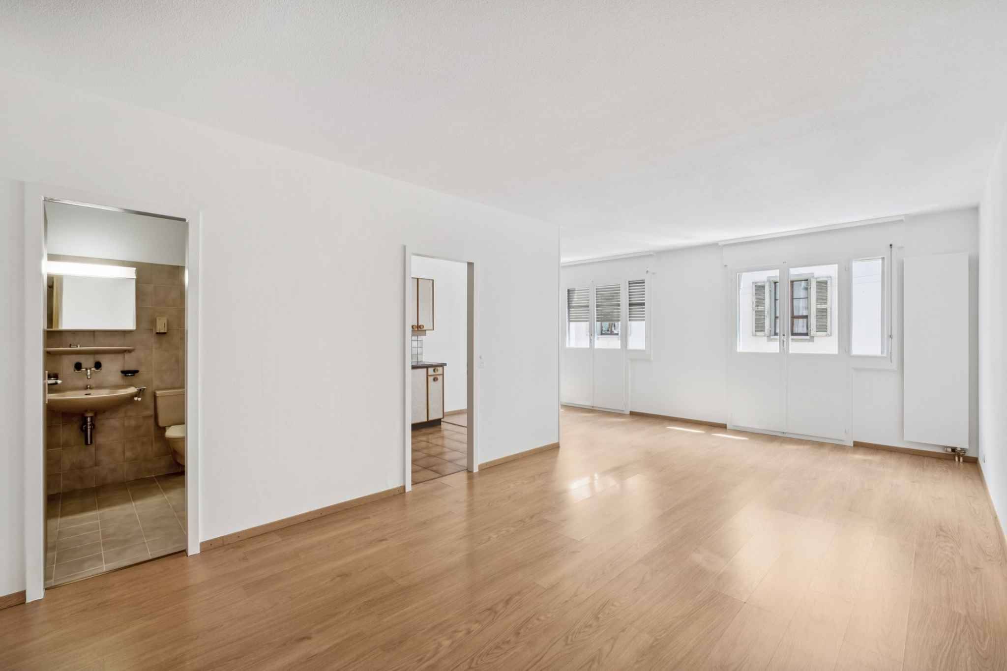 Appartement de 2 pièces situé au 2ᵉ étage d’un immeuble des années 80.