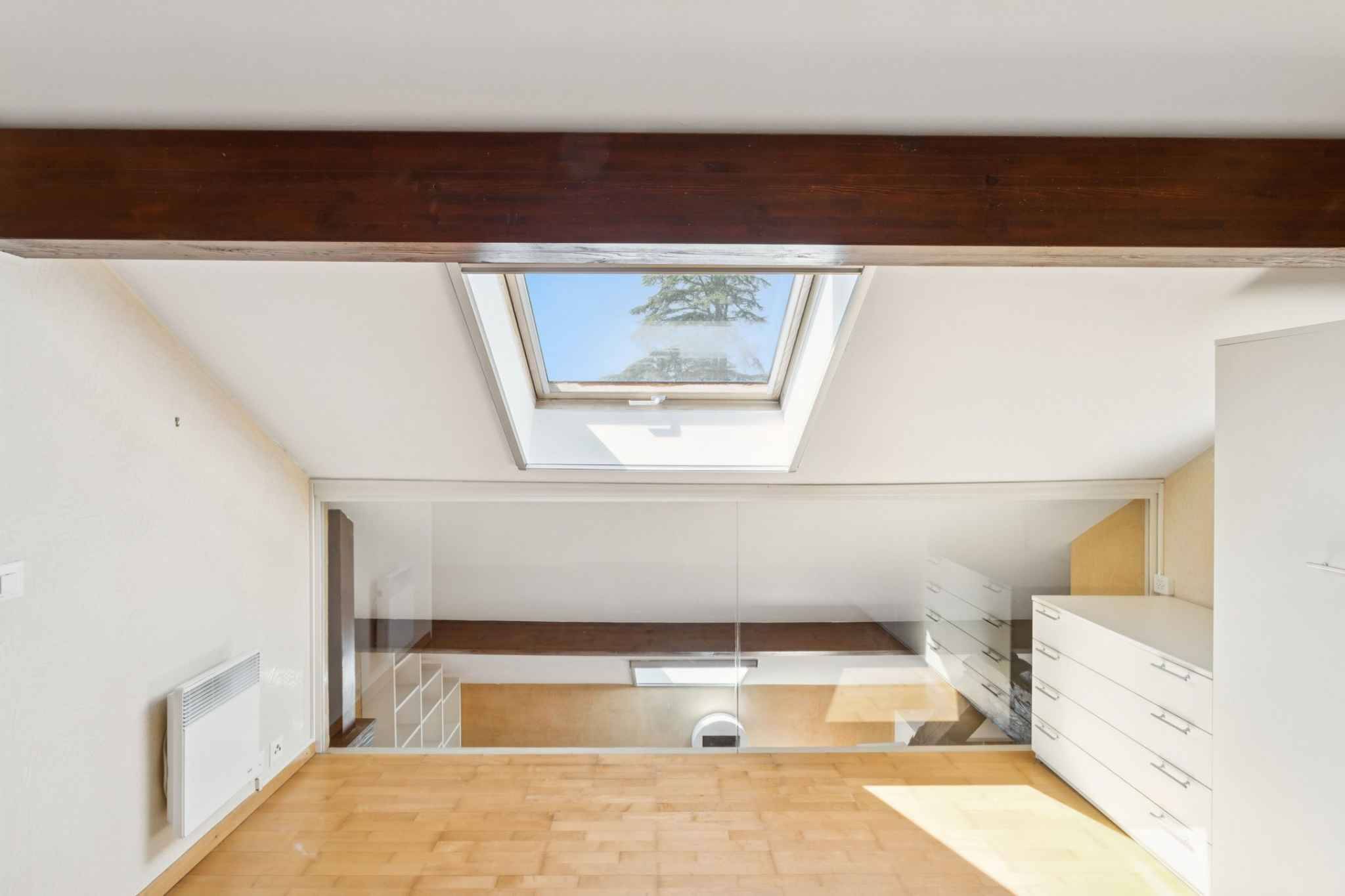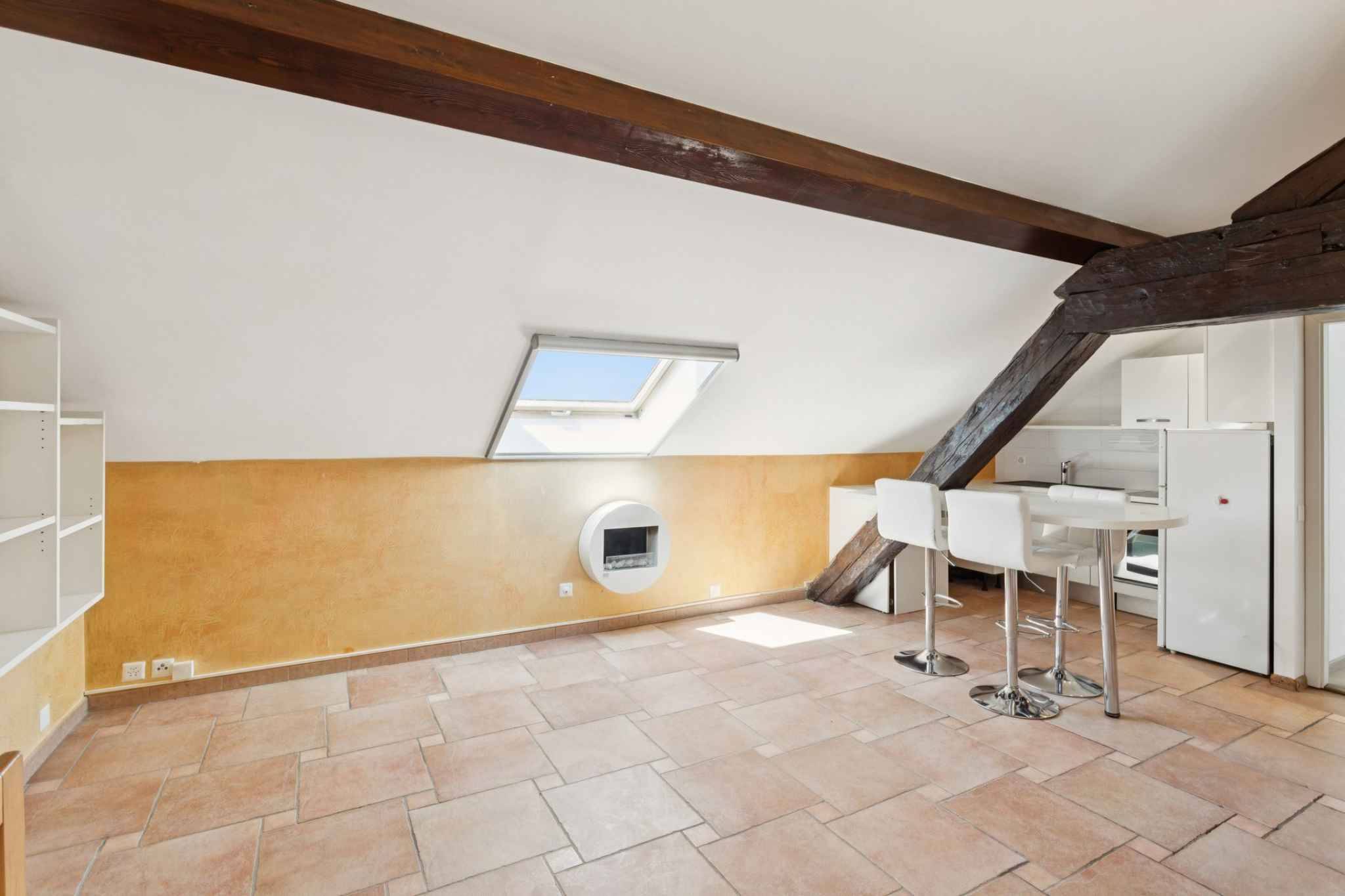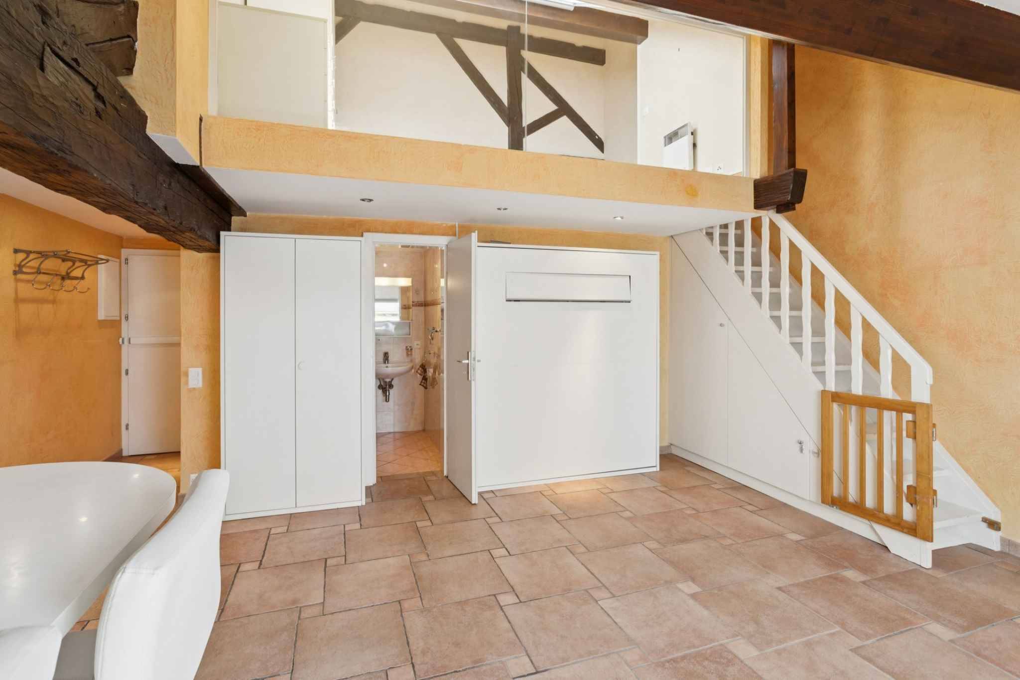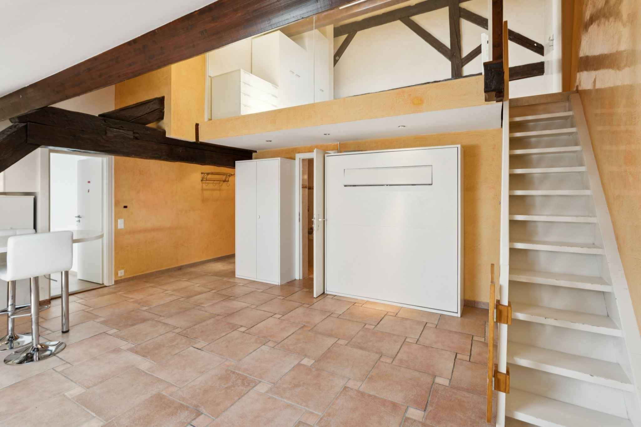 Ce bien se compose d'une belle pièce ouverte avec une cuisine et un salon, une chambre à coucher, une salle de douche avec toilettes ainsi qu'une mezzanine qui pourrait faire office de chambre à coucher ou bureau.