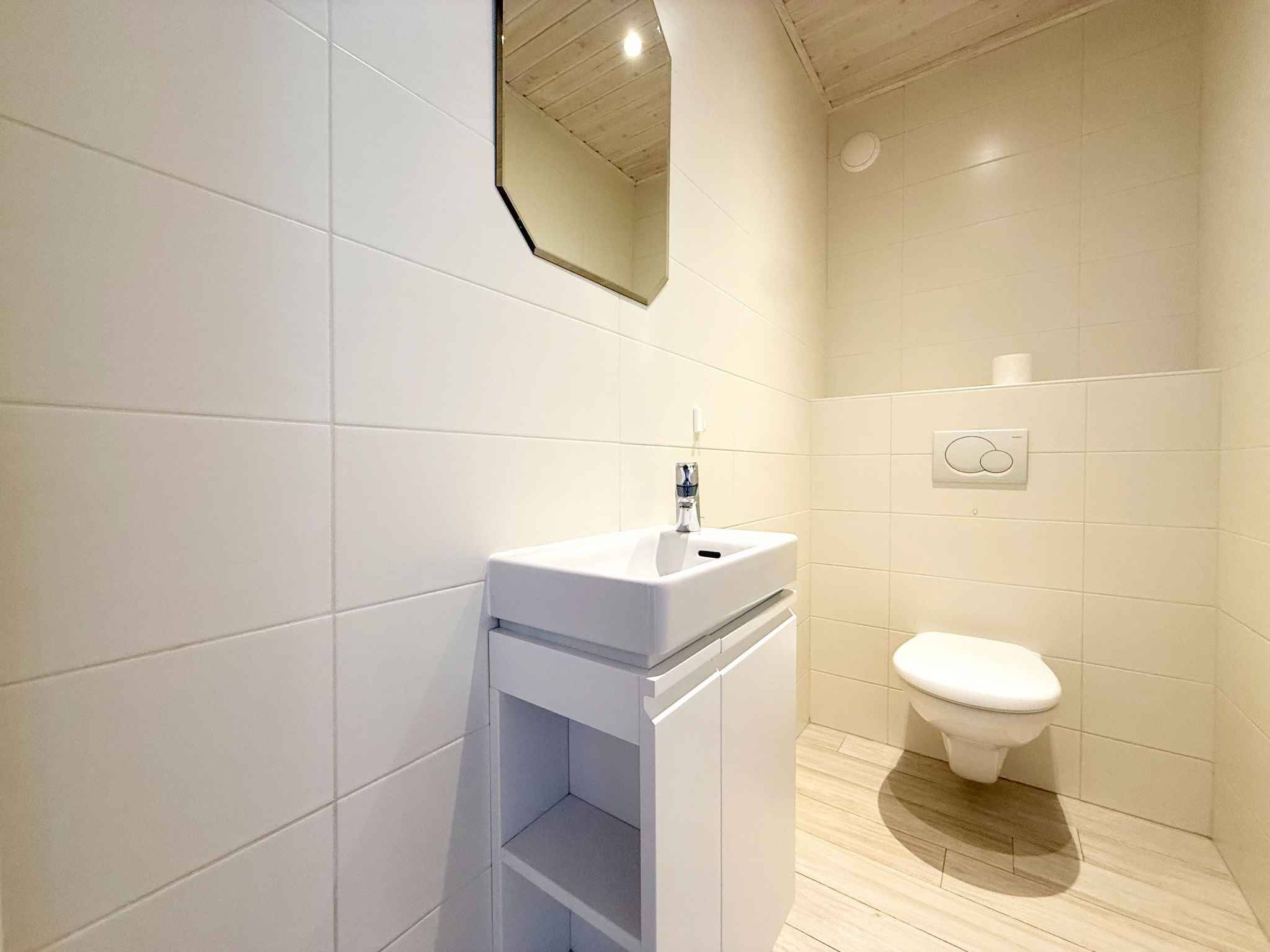 À l’étage supérieur, une grande chambre avec salle de douche attenante offre la possibilité d’aménager une véritable suite parentale, à l’écart, propice au calme et à l’intimité.