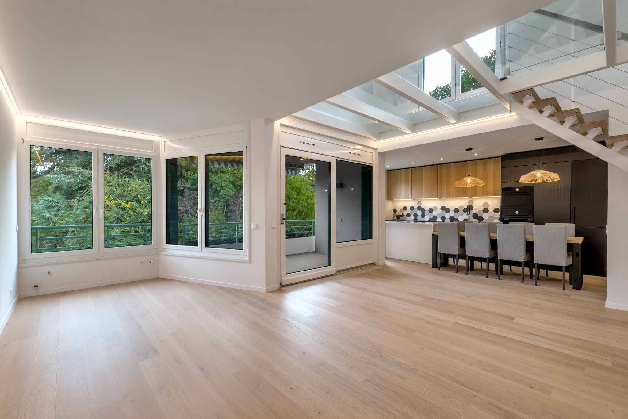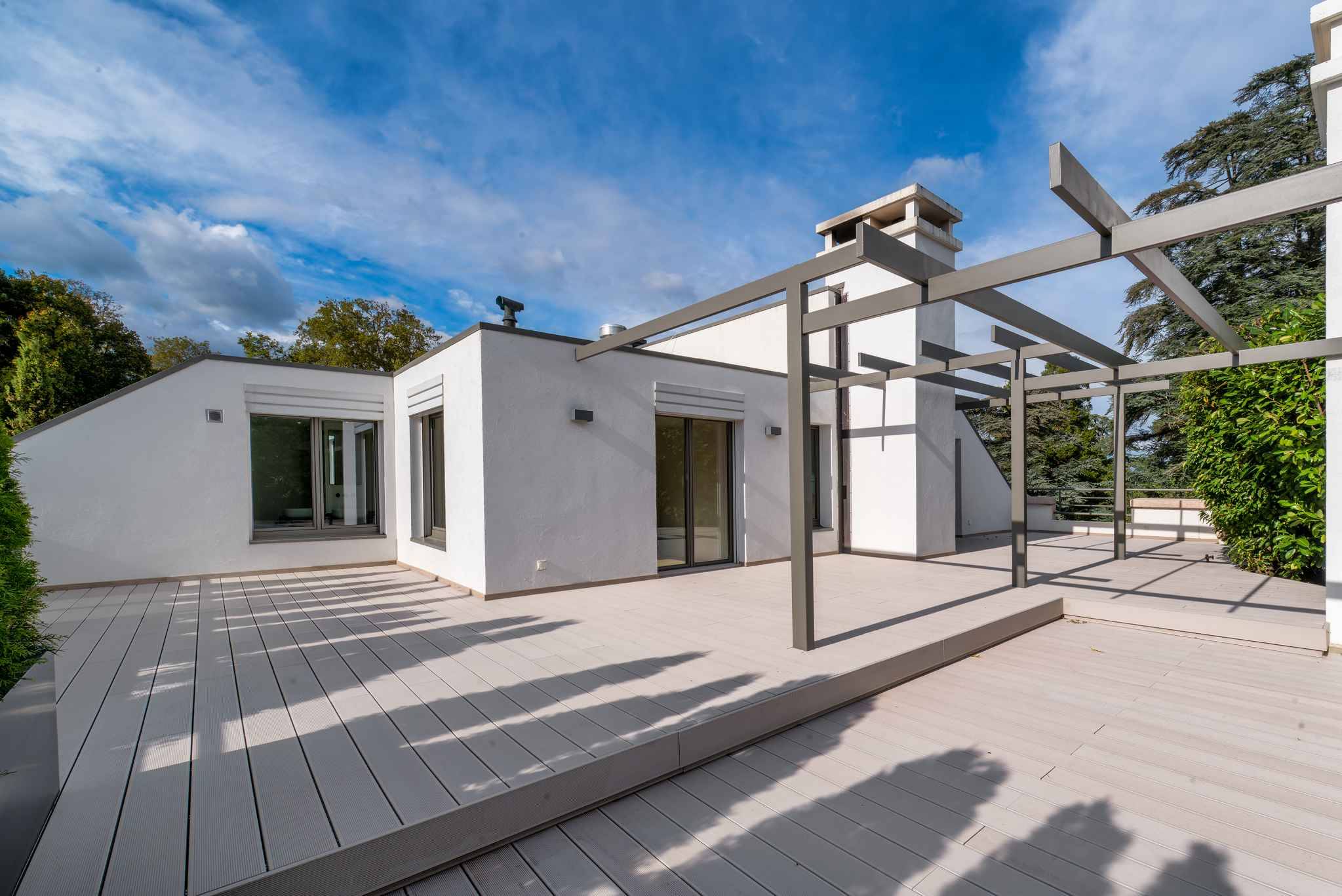 Nestled in the heart of a vast private park of 10,000 m², within an upscale boutique residence just steps from the lake, this magnificent penthouse duplex offers an exceptional living environment. Located only 250 meters from Port-Choiseul and the Versoix beach, it enjoys an ideal setting for families.