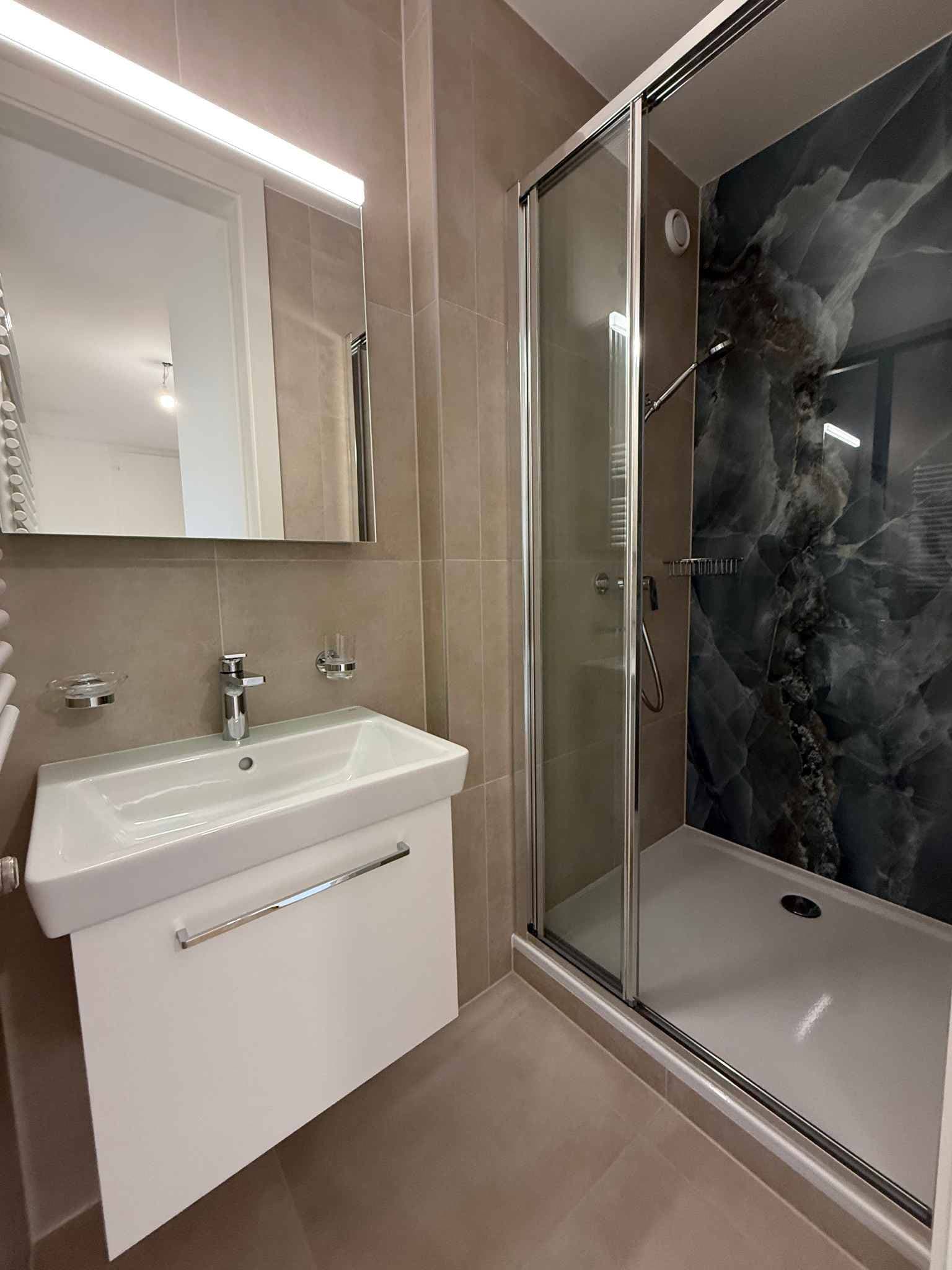 - Une belle salle-de-bain et une salle-de-douche modernes